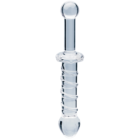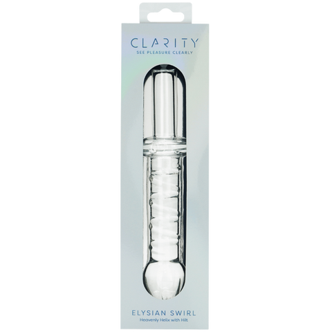 The Elysian Swirl is a handblown glass dildo with a spiral-textured design that delivers dynamic, layered sensations.