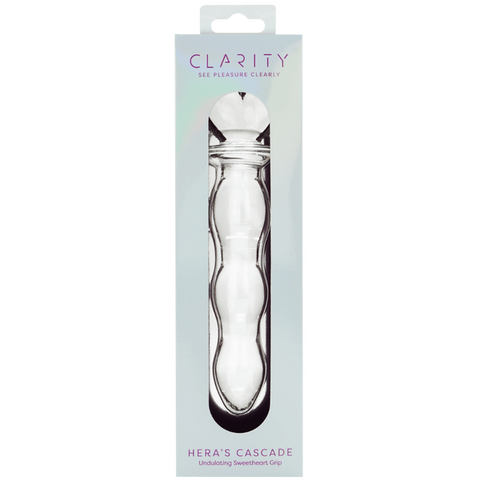 Hera’s Cascade is a 5.9-inch glass dildo with a sculptural heart-shaped handle, designed for elegance, control, and deeply satisfying stimulation.