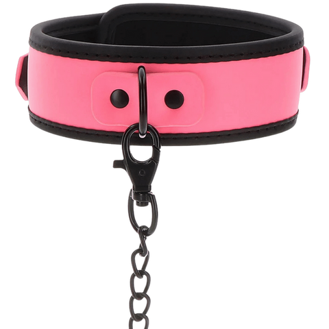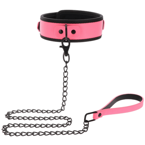 Explore your kinky side! Use the TABOOM GLOW IN THE DARK COLLAR & CHAIN LEASH in the bedroom, hotel room, play party or kinky club. Let your trusted dominant control you by pulling you around. The easy-to-use Collar & Chain Leash are made of high-quality materials and are perfect for an excellent BDSM session. Or wear it as a sexy fashion statement. Get ready for an enlightening bondage experience with the vegan leather collar & chain leash.
